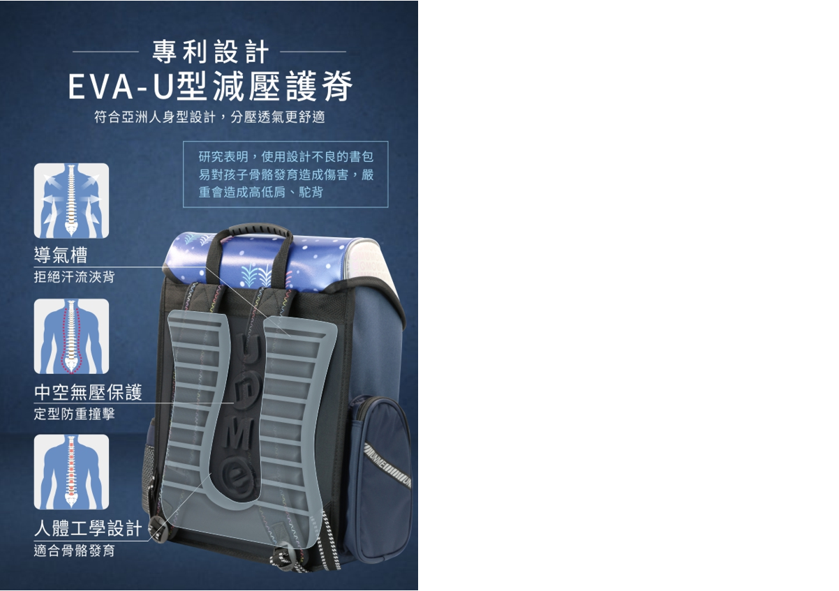小學的這段時間是孩子成長發育的時期,過重的書本會影響脊椎的生長,一款書包除了擁有護脊功能設計之外,也需要搭配正確的揹負姿勢,才能真正達到負重減壓的效果。