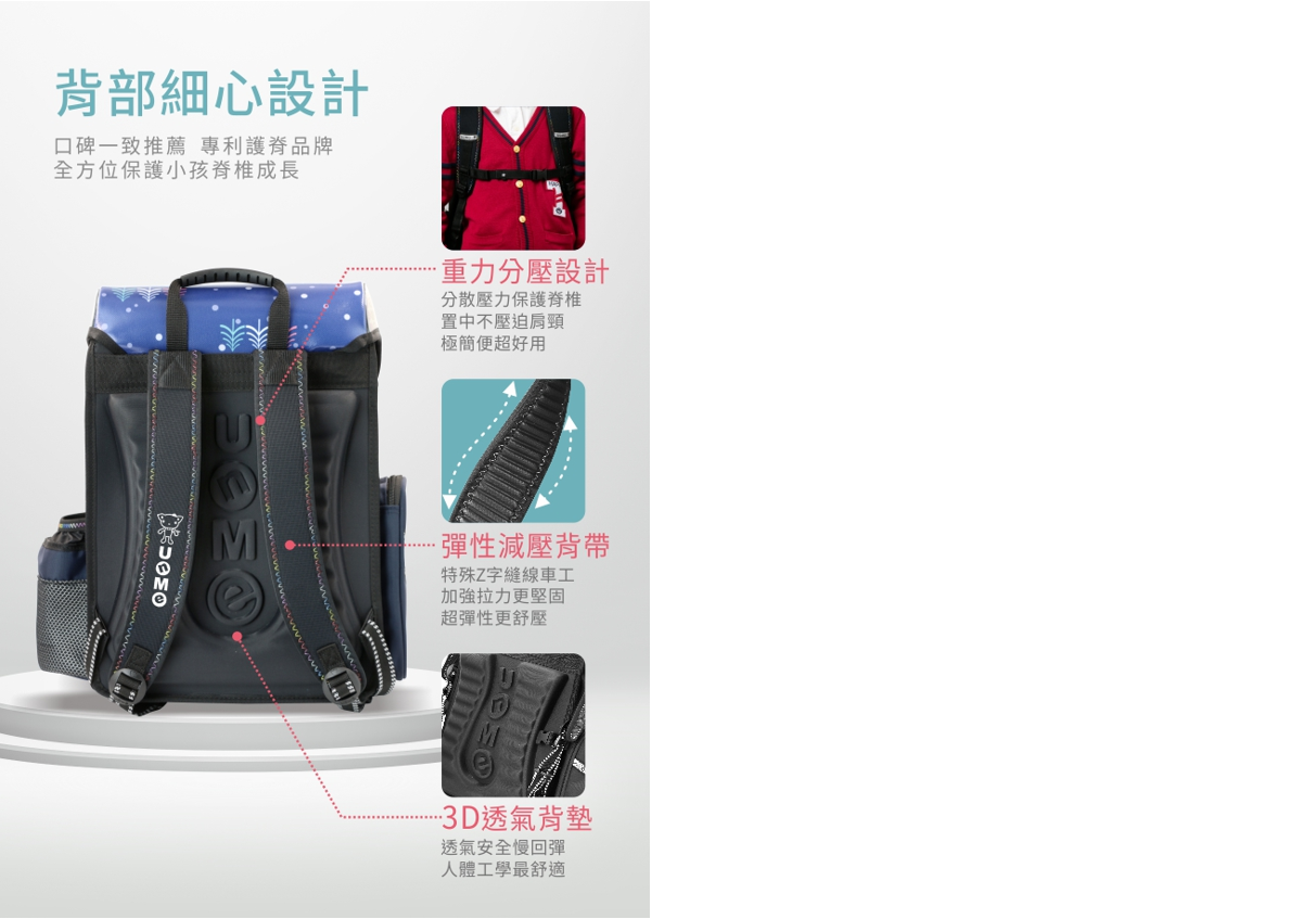 即使是同一款書包,每位孩子背上去的舒適度及感受也會不太相同,故做好書包功課後也要去實體門市讓孩子試揹才會知道適不適合孩子呦!