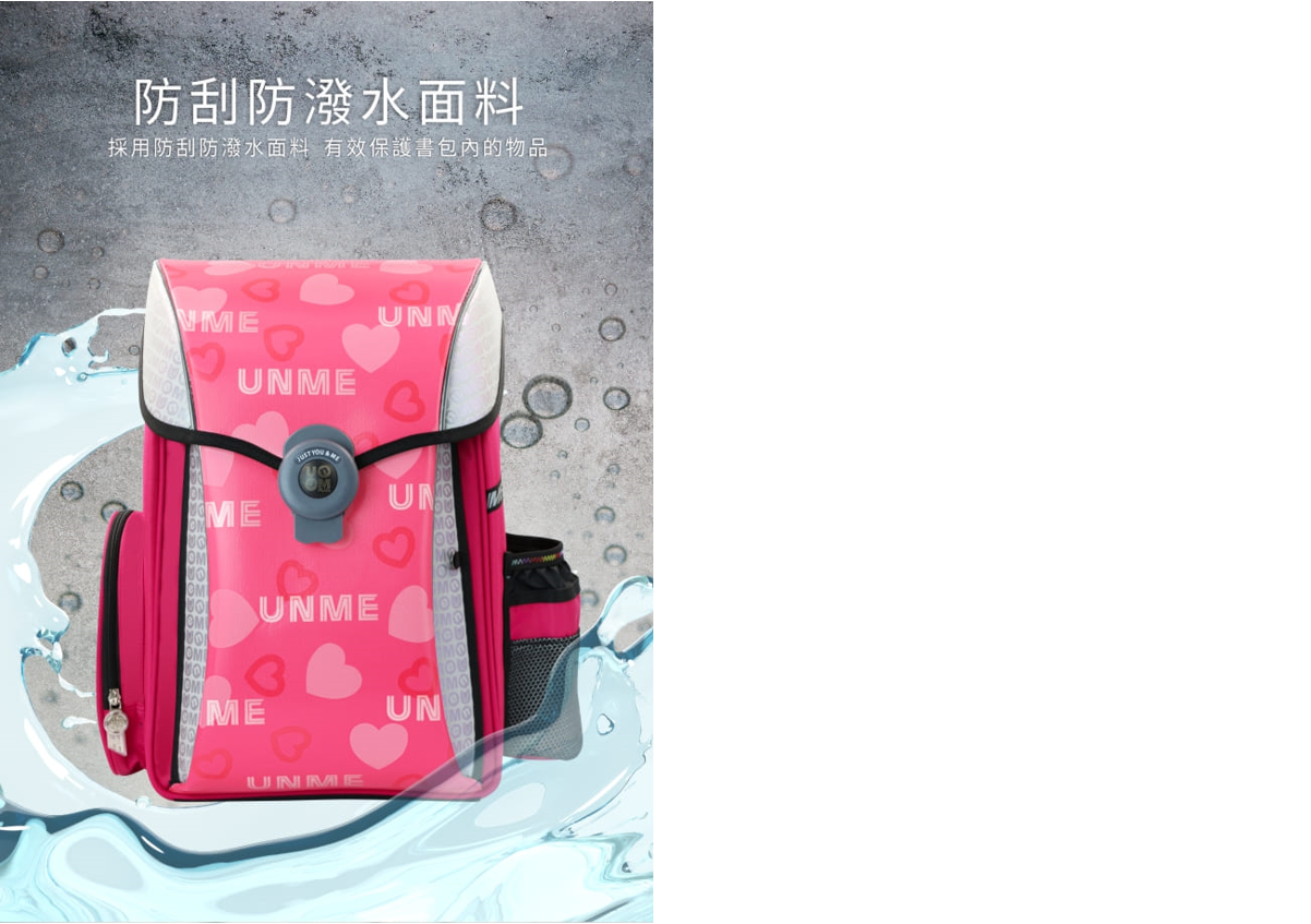 防刮防潑水設計不僅能延長書包使用壽命外,毛毛雨的時候使用毛巾擦拭就會乾淨溜溜摟!