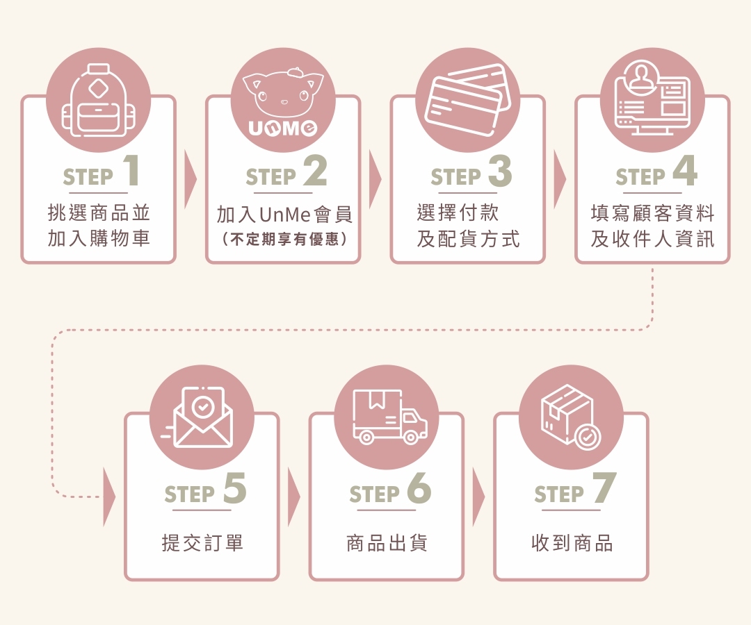 1. 帳款確認後將立即處理您的訂單,您將於七個工作日內(不含週六日及國定例假日)收到訂購之商品。