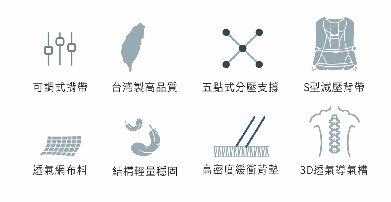 大家都深知台灣的夏季有多麼潮濕燜熱,常常因為揹書包搞得滿身大汗,一不小心就容易著涼感冒。調位包採用高透氣網格布料和全方位透氣倒流槽,將積累於背部的熱氣通通排出去,就算揹久了還是一樣舒爽!