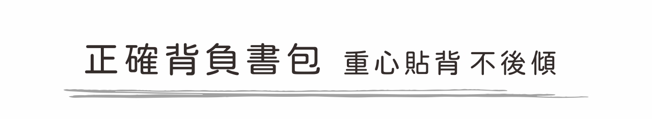 正確方式背負書包,背板與背部貼合且書包垂直於腰部,能防止因為書包重量壓肩而後傾情況發生。
