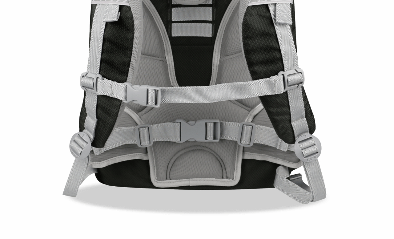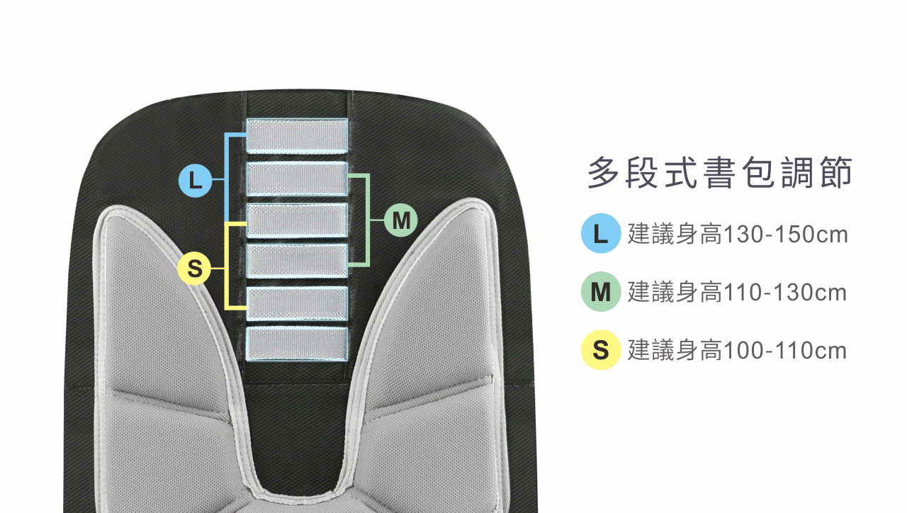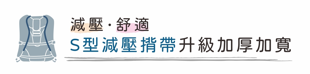 對於書包和孩子的橋樑 – 揹帶,調位包更是下足了功夫!S 型揹帶更符合人體曲線,可完美貼合於胸部和手臂間的縫隙位置,使孩童揹起書包更加舒適。此外,揹帶更是厚達2公分,能讓重量平均分散於雙肩且避免揹帶勒勃勒肩的情形發生。