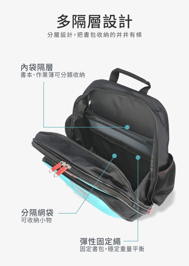 .內部有分隔夾層、有鬆緊扣帶可固定書本